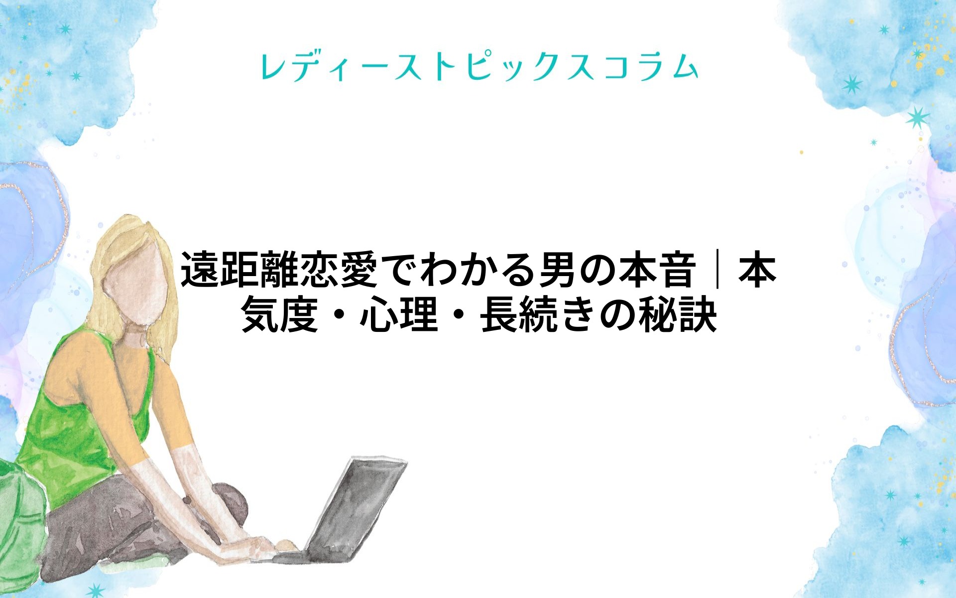遠距離恋愛は、距離だけでなく心の距離も感じやすいもの。特に「遠距離恋愛」に悩む女性は多く、「彼は本当に私のことを想ってくれているの?」「将来を考えてくれているの?」と不安になる瞬間もあるでしょう。本記事では、男性特有の心理や本音、遠距離... -