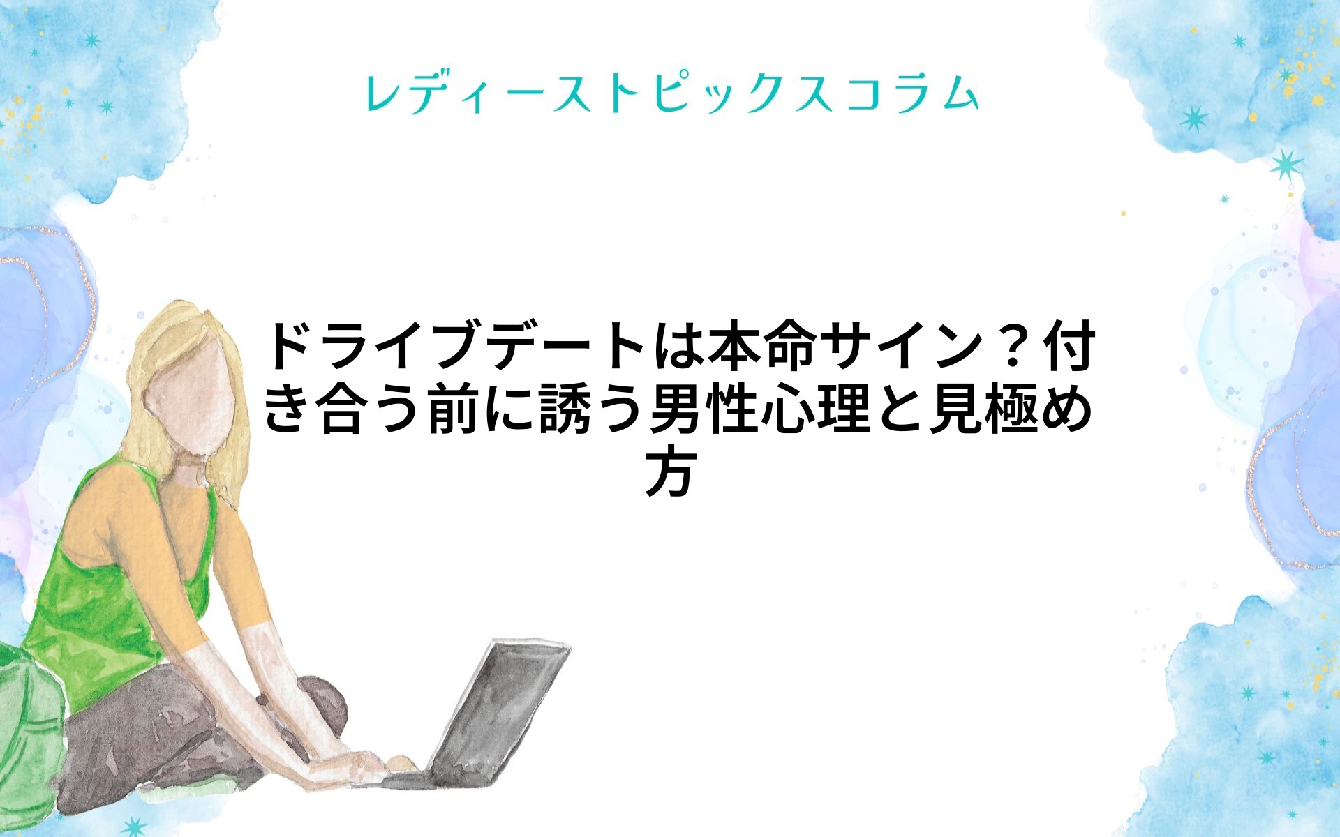 「ドライブデート」というキーワードでお悩みの女性は多いはず。付き合う前に男性からドライブデートに誘われると、「もしかして本命?」と期待する反面、「下心があるのでは?」と不安になることも。この記事では、男性が付き合う前にドライブデートに誘...