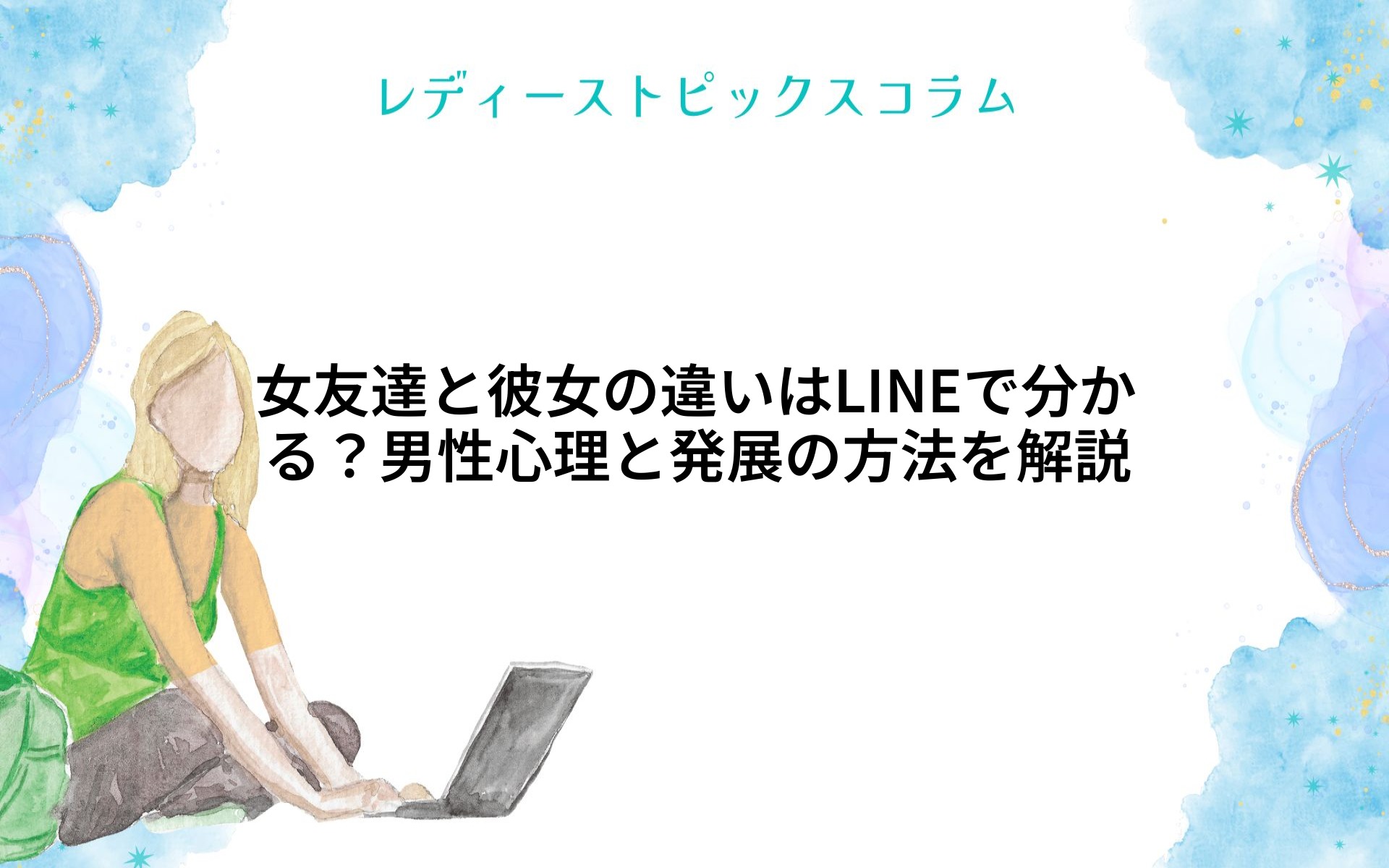 「女友達と彼女の違いは何?」と悩んだことはありませんか?特にLINEでのやりとりでは、その違いが見えにくいもの。男性は女友達と彼女でどんな心理の差を持っているのか、どんなLINEのやり取りが境界線になるのか、そして女友達から彼女へと発展するため... -